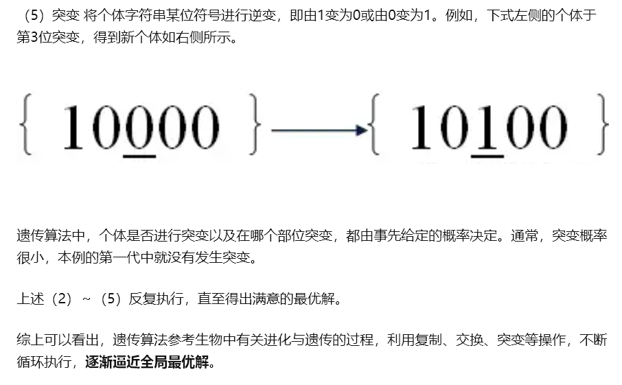 这个过程将导致种群像自然进化一样的后生代种群比前代更加适应于环境,末代种群中的最优个体经过解码(decoding),可以作为问题近似最优解。